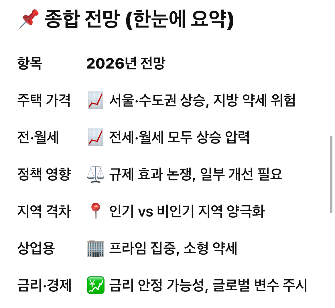 📌 2026년 부동산 시장 전망 — 핵심 요약